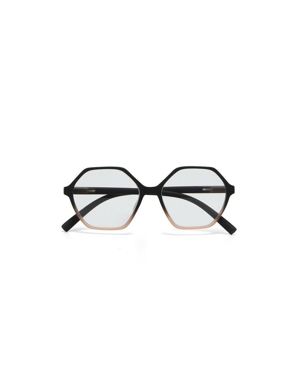 Montatura soft touch dalla forma esagonale con spring arms per il massimo comfort.