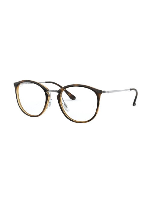 Montatura vista donna rotonda con frontale in acetato e aste in metallo.